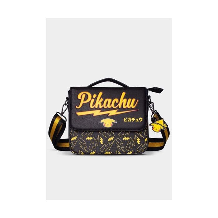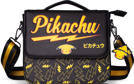 Pokémon Axelväska, barn, liten crossbody-väska, flera fickor, barn, tonåring, presentidé, Pikachu Eevee, Svart/Pikachu gul, S