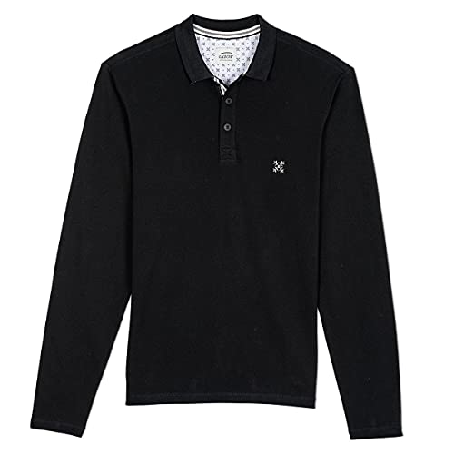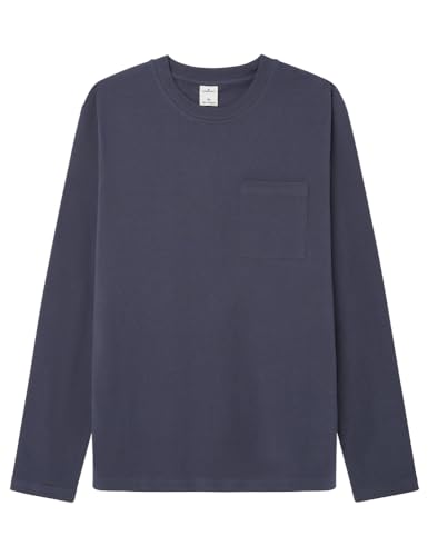 Springfield Herr Reconsider Cotton Pique långärmad T-shirt med bröstficka, blå, M, BLÅ, M
