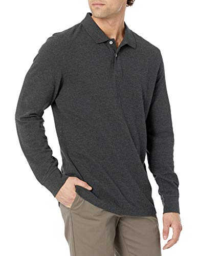 Amazon Essentials Herr Slim-Fit Långärmad Pique Polo, Charcoal Heather, Large
