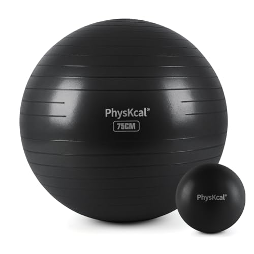 PhysKcal 75cm Black Thick Gym Ball and 23cm Pilates Ball Set, Anti-Burst Gymnastics Ball, Non-Slip Seat Ball, Balance Ball, Yoga Ball for Home, Gym and Office