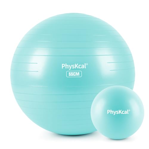 PhysKcal 65cm Green Thick Gym Ball and 23cm Pilates Ball Set, Anti-Burst Gymnastics Ball, Non-Slip Seat Ball, Balance Ball, Yoga for Home, Gym and Office