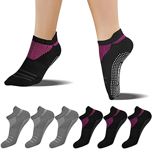 FUNDENCY Halkfria yogastrumpor för kvinnor, halkfria strumpor för pilates bikram fitnessstrumpor med grepp, Svart*3 Mörkgrå*3, 42-44.5 EU