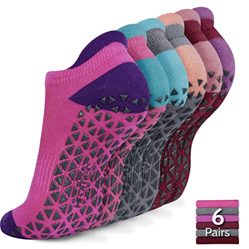 Halkfria yogastrumpor med grepp för pilates, balett, barfota, sjukhus halkfria strumpor för kvinnor och män, 6 par, Medium
