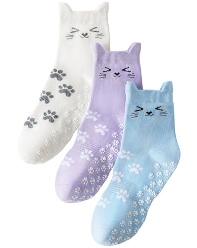 Pilates Grip strumpor för kvinnor och flickor söt yoga gripy halkfria strumpor med katt tass gripare halkfria stoppstrumpor för balett dans studsmatta sjukhus fitness hemma, Vit + blå + violett, one