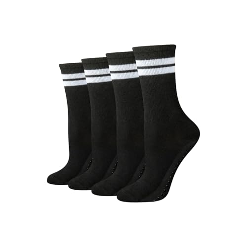 Amazon Essentials dam halkfria pilates crew-strumpor med grepp, 4 par, Svart, 8-12