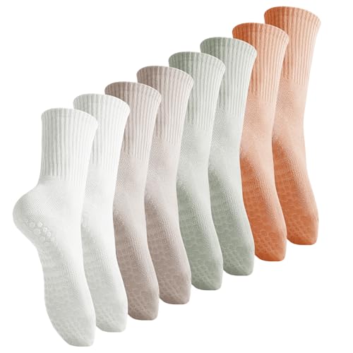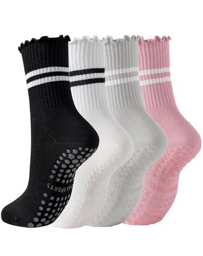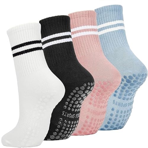 XNIVUIS 4 par halkfria yogastrumpor studsmatta strumpor för kvinnor pilates grepp strumpor yogastrumpor med grepp höstförebyggande grepp strumpor för hemträning, 4 par, one size