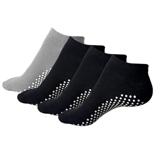 KEYRI Comodos Yoga Pilates strumpor för kvinnor och män, halkfria, kampsportstrumpor fotledsstrumpa med halkfria prickar, en storlek, 3 svart + 1 grå, 36-44