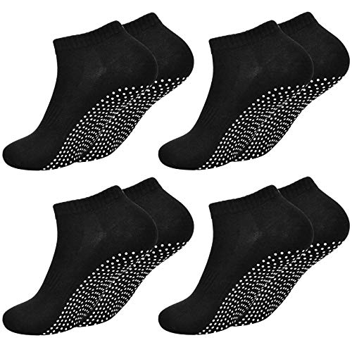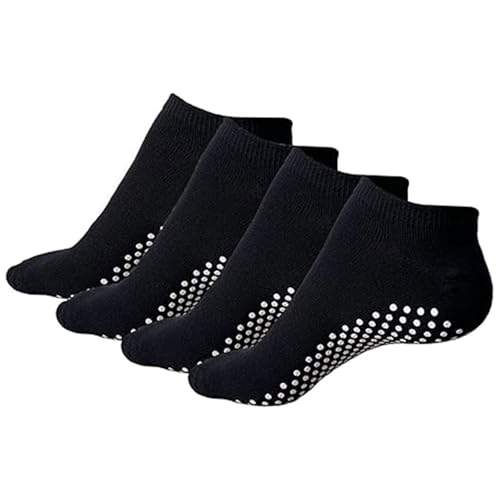 Fangehong 4 par, halkfria, strumpor för män, kvinnor, storlek EU 40–45, yogastrumpor, halkfria med noppor för pilates, stoppstrumpor, bomull för stång, svart, Einheitsgröße
