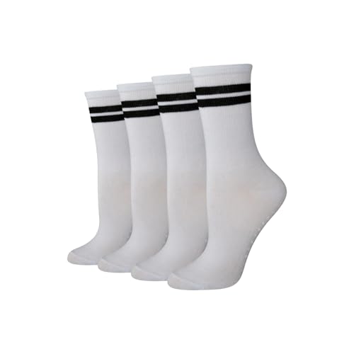 Amazon Essentials dam halkfria pilates crew-strumpor med grepp, 4 par, Vitt, 8-12
