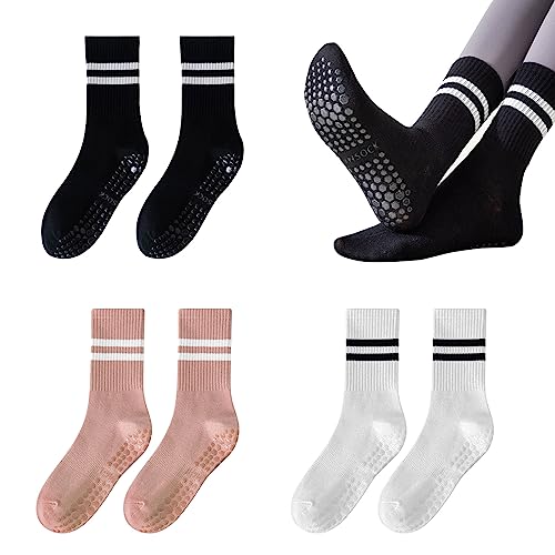 Sunolkie 3 par halkfria tåstrumpor, pilates yoga halkfria strumpor, medellängd, svettabsorberande och andas, sportig och avslappnad, klassisk, Mörkgrå + svart + mjölkvit, one size