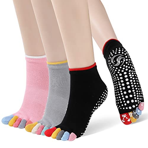ZAKASA Halkfria yogastrumpor för kvinnor: Pilates strumpor med fingrar dam 5 fingrar separerade fingrar sportstrumpor för barer dans fitness EU 36-43, 3 par, Dot, 36-39 EU