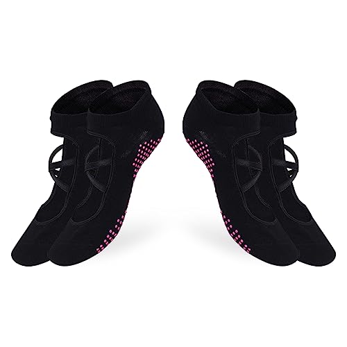 WeddHuis 2 par yogastrumpor för kvinnor halkfria, greppstrumpor med remmar halkfria strumpor för barre fitness pilates balett dans barfotaträning (svart + grå), färg