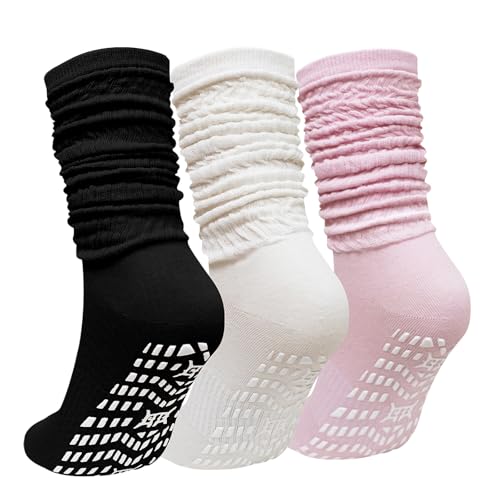 PUTUO Yoga strumpor stoppstrumpor för kvinnor: Halkfria strumpor för pilates fitness studsmatta sport och rehabilitering hemma – slouch långa kvinnor av bomull med Grips Mix färgset 3 par, Blandade