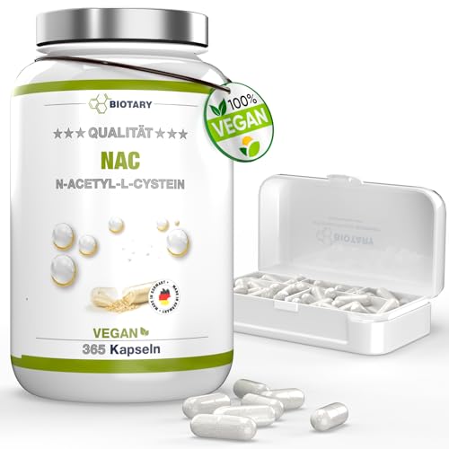 NAC - N-Acetyl L-Cystein | 365 kapslar | 12 månaders förbrukning | inklusive pillerburk | C-vitamin | vegan | laboratorietestad