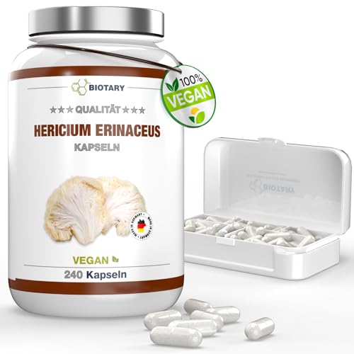 Lions Mane - 1950 mg daglig portion - 240 kapslar - 30:1 extrakt (=58 500 mg Hericium Erinaceus) - inklusive pillerburk - 30% polysackarider - 5% betaglukan - vegan – högdos