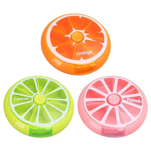3-delad pillerburk, mini pillerburk, pillerdispenser, bärbar pillerask, rund pillerlåda med flera fack, söt pillerlåda av plast (orange, rosa, grön)