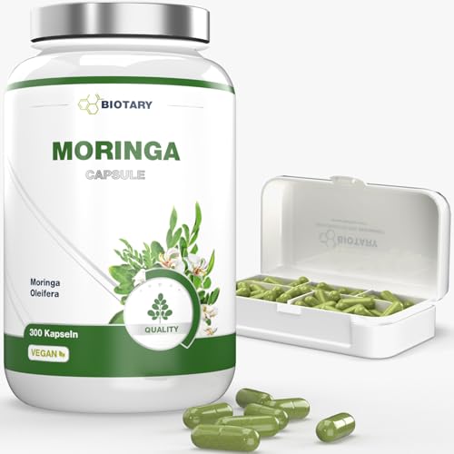 Moringa Oleifera 300 kapslar | 1800 mg högdos | 3-4 månaders förbrukning | inklusive pillerburk | högdos | 100% vegan | rent växtbaserad | laboratorietestad | Tillverkad i Tyskland