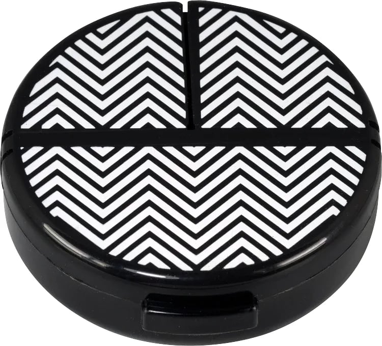 Hjärtats pillerburk 3 fack Svart/vit mönstrad