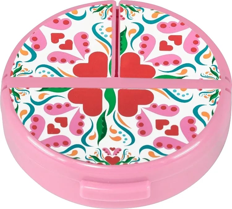 Hjärtats pillerburk 3 fack Rosa mönstrad