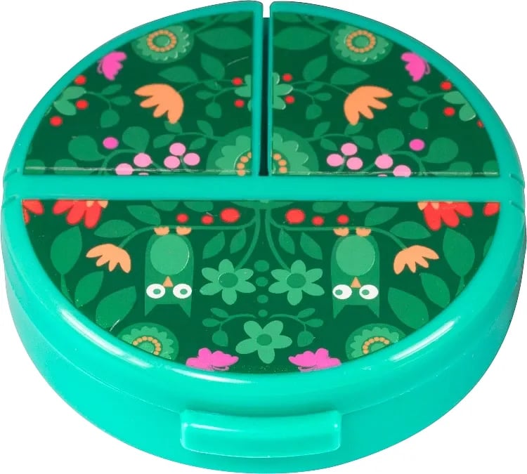 Hjärtats pillerburk 3 fack Turkos mönstrad
