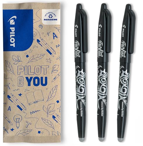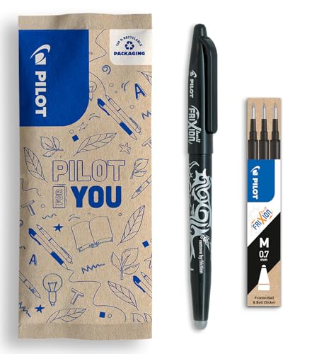 PILOT – Set med 2 Frixion Ball + 1 set med 6 refills + 1 sudd – Raderbar gelbläckpenna k – Påfyllningsbar gelbläckpenna i återvunnen plast – Svart – 0,7 mm spets