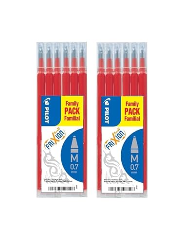 PILOT FriXion påfyllningspatroner 0,7 – 12 stycken (set med 6), färg blå – Frixion påfyllningspatron med raderbart bläck – kompatibel med Frixiion Ball & Frixiion Clicker – medeltjock – gelbläckpatron