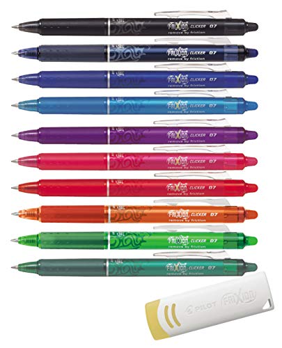 Pilot FriXion Ball Clicker (Knock Retractable Gel Ink Pen) – 0,7 mm – 10 blandade färger i set (alla 10 färger | Clicker 0,7 | med borttagning)
