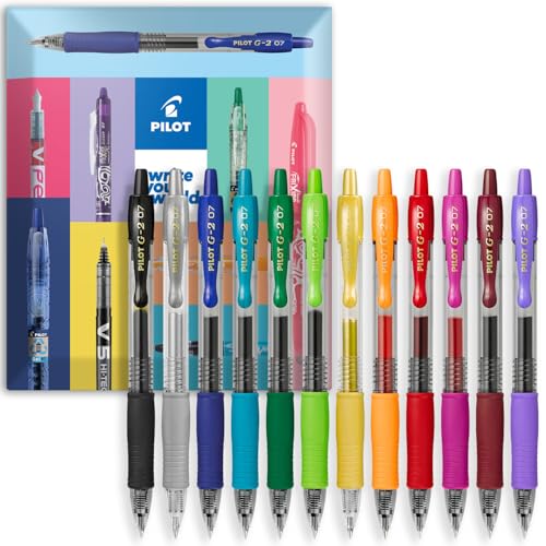 Pilot G-2 infällbar rollerball-pennor med gelbläck – 0,7 mm spetsspets – plånbok set med 12 – essentiella färger