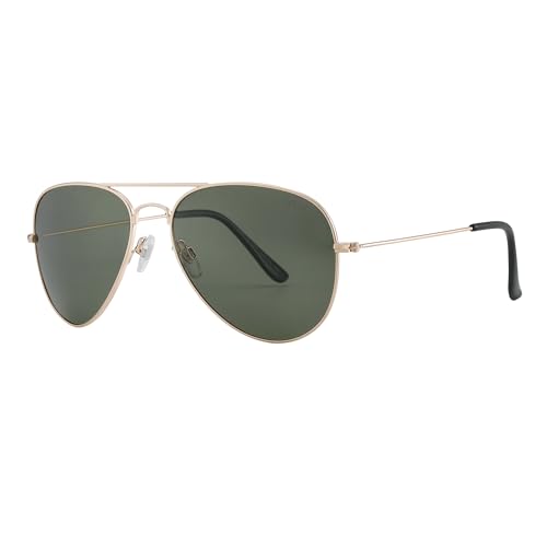 JOOX Polariserade solglasögon för män pilotglasögon, ultralätta pilotsolglasögon för kvinnor, UV400 skyddande lins och metallram, Glänsande guld/G15 grön, M
