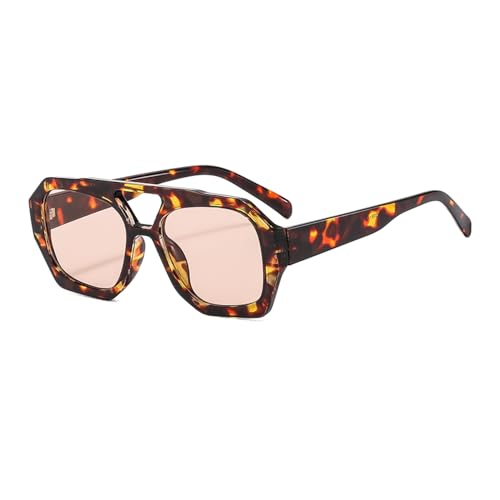 YAMEIZE 70s Retro Double Bridge solglasögon - pilotglasögon för kvinnor och män - klassiska sexkantiga fyrkant körglasögon, Ljusbrun Leopard