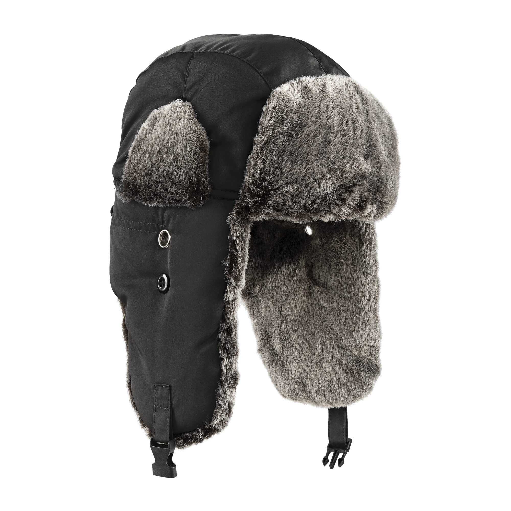 Insun Unisex pilotmössa, vintermössa, varm pilotmössa med fuskpäls, vintermössa, öronskydd, vintermössa, Svart 2, XXL