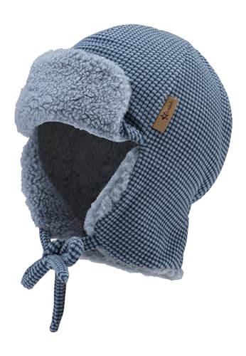 Sterntaler pilotmössa med ribbmönster – diskret randig – pojkar skogshuggarmössa påsydda öronlappar och band – vintermössa för barn, fodrad med teddyplysch – blå, 43, blå, 43