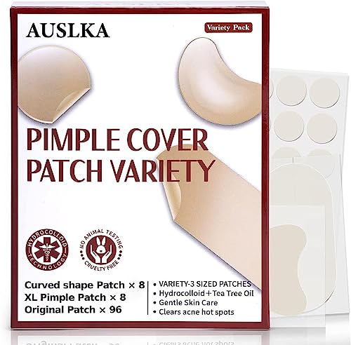 AUSLKA MIX pimple patch, 4 storlekar för stora finnar, (120 plåster) för ansikte, haka eller kropp, hydrokolloidbandage för aknehud