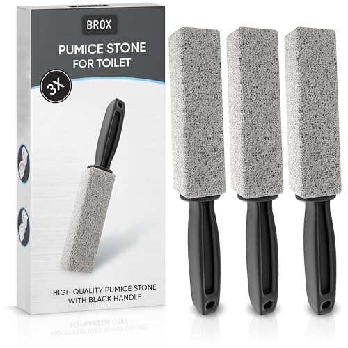 BROX® Bimsstein WC 3-pack – Toalettrengörare för envis urinsten & kalk – Pimpsten för toalett – Effektiv rengöringssten – Urinstenborttagare med svart handtag