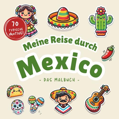 Meine Reise durch Mexico: Das große Mexico Malbuch I 70 typisch mexikanische Motive von Piñatas über Tacos bis hin zu Mariachi-Musiker