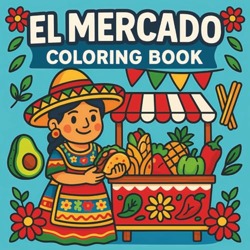 El Mercado: A Mexican-Themed Bold and Easy Coloring Book: 40 Fun and Festive Market Scenes with Tacos, Sombreros, Piñatas, and More – Perfect for Kids, Adults, Teens and Seniors