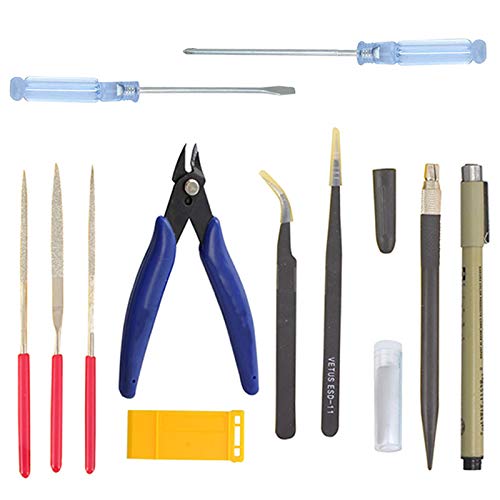 Tillbehör gör-det-själv verktygssats med 2 x skruvmejsel rak pincett 1 x böjd pincett saxskärare trimmer penna platt fil halvrund fil tre vinklar filöppnare