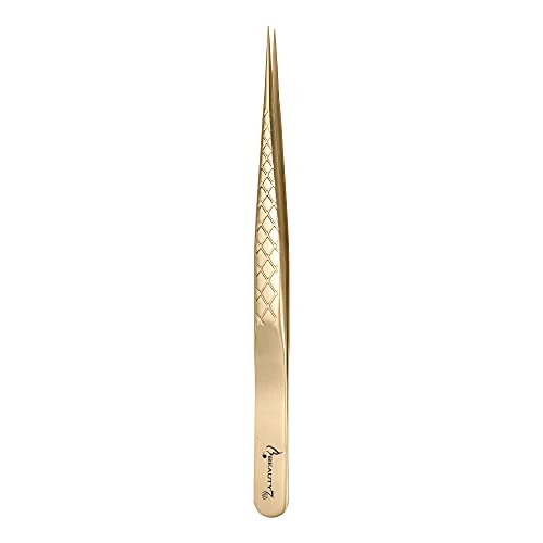 Beauty7 professionell pincett rostfritt stål ögonfransförlängningspincett, ögonfransar, pincett, rak spets, precisionspincett med fodral, guldfärg, återanvändbar
