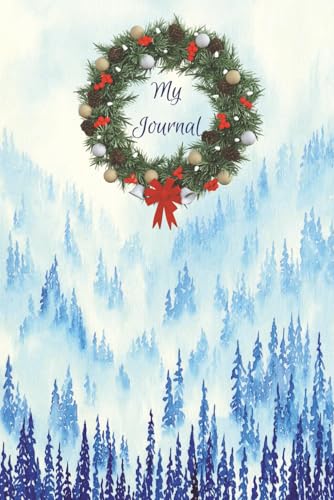 Blue Pine Forest Christmas Wreath Journal - 6" x 9" Size - 150 Pages - Narrow Rule - Winter Holiday