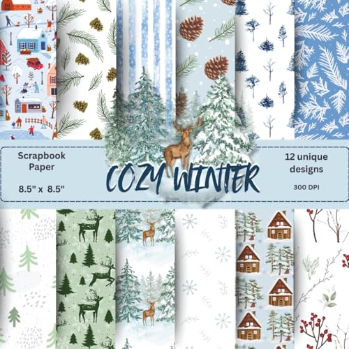 Cozy Winter Christmas Scrapbook Paper: 48 Sheets (8.5" x 8.5") | Pine Forest, Snowflakes, Branches & Woodland Scenes | 12 Unique Designs | Rustic Winter Aesthetic for Crafts, Journals & Card Making