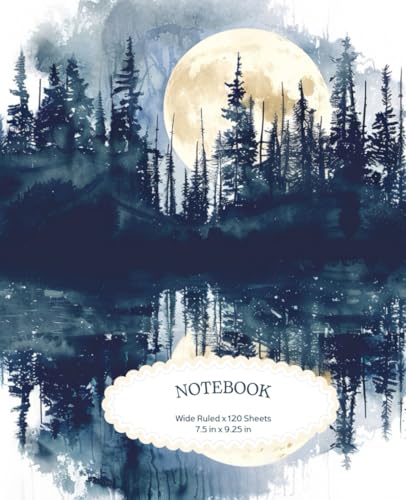 120-Page Lined Notebook, Moon Over Pine Forest Lake: 7.5" x 9.25" Calm & Peaceful Scene — Perfect for Mindful Writing & Note-Taking