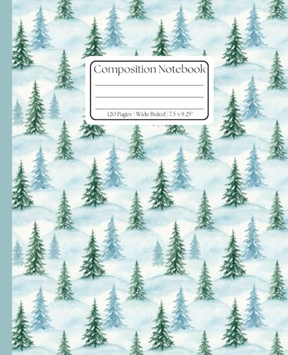 Winter Forest Composition Notebook: A Snowy Pine Tree College Ruled Journal — Watercolor Evergreen Pattern Cover for School, Work, and Seasonal Notes