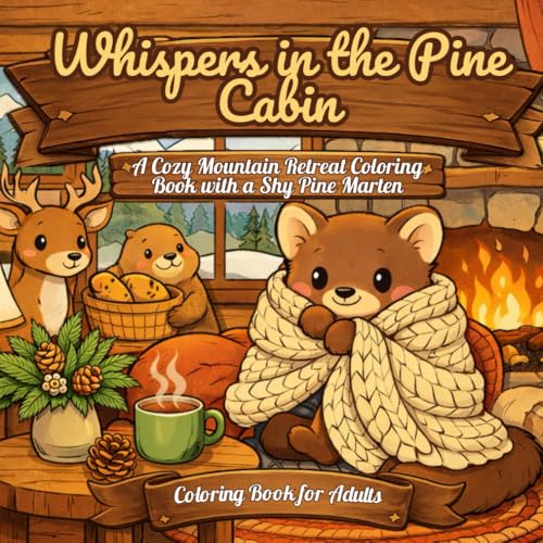 Cozy Mountain Forest Coloring Book for Adults: Relaxing Woodland and Mountain Cabin Scenes with a Shy Pine Marten, Warm Interiors, and Peaceful Nature for Stress Relief