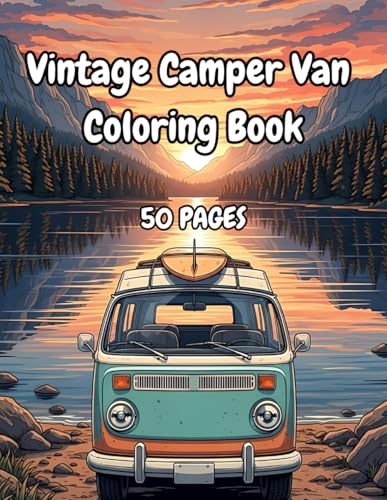 Vintage Camper Van Coloring Book: 50 Scenic Camping, Mountain & Pine Forest Line-Art Designs for Relaxation