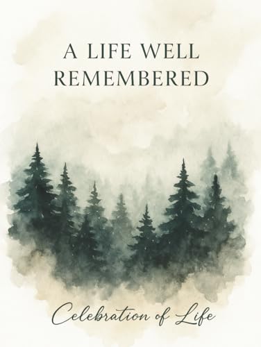 A Life Well Remembered: Celebration of Life Memorial Guest Book: Elegant Funeral Guest Book with 300 Entries and Inspirational Quotes – Watercolor Pine Forest Tribute – Hardcover Keepsake