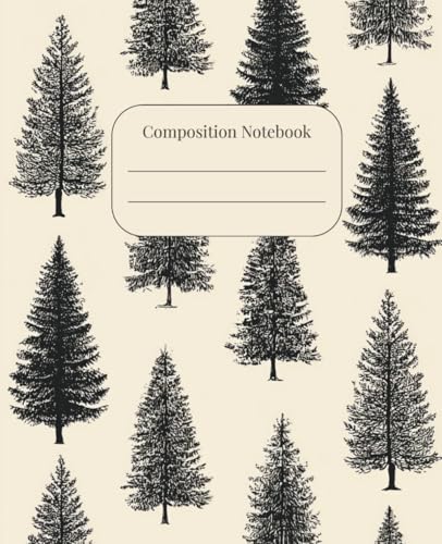 Vintage Pine Trees Composition Notebook: Wide Ruled Writing Journal with Classic Forest Sketch Cover, 7.5×9.25