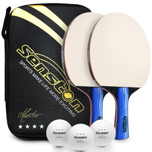 Senston professionella bordtennisfladdermöss 2-spelare set med ping pong racketfodral, perfekt för mellan-, avancerad, familjeaktivitet och sportklubb