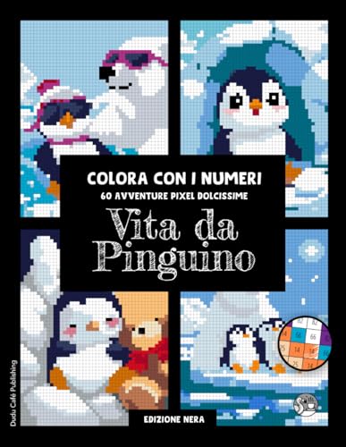 Vita da Pinguino • Colora con i numeri • 60 Avventure Pixel Dolcissime (Edizione Nera): Libro da colorare in pixel art per adulti: divertimento artico ... colori, rilassante e antistress #DuduQuests