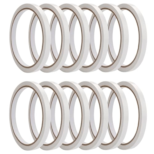 12 rullar stark dubbelsidig tejp hantverk självhäftande tejp, 6 mm tejp dubbelsidig självhäftande tejp, herbarium självhäftande remsor för papper, metall, trä glas (10 m/rullar)