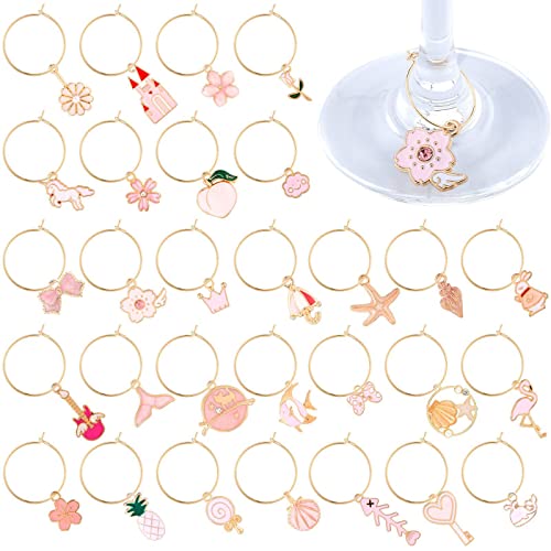 30 Pcs Charms Ringar Markörer Särskilj Champagne Vinglas Hänge Charm Färg Markering Av Glas Cocktail Drycker Markörer Glasmarkör Färgglad Drinkmarkeringsfest (rosa röd)